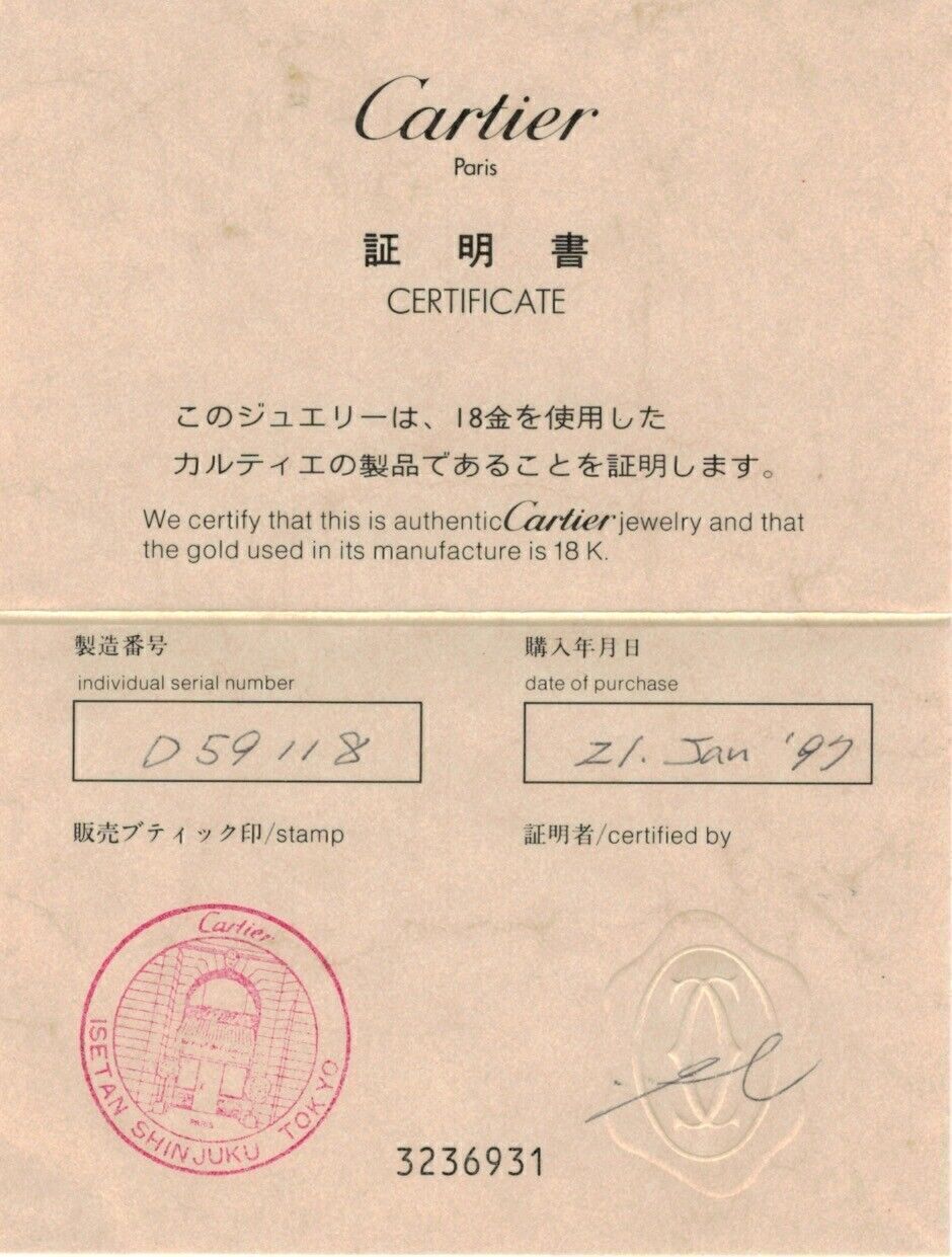 Comes with Cartier Certificate