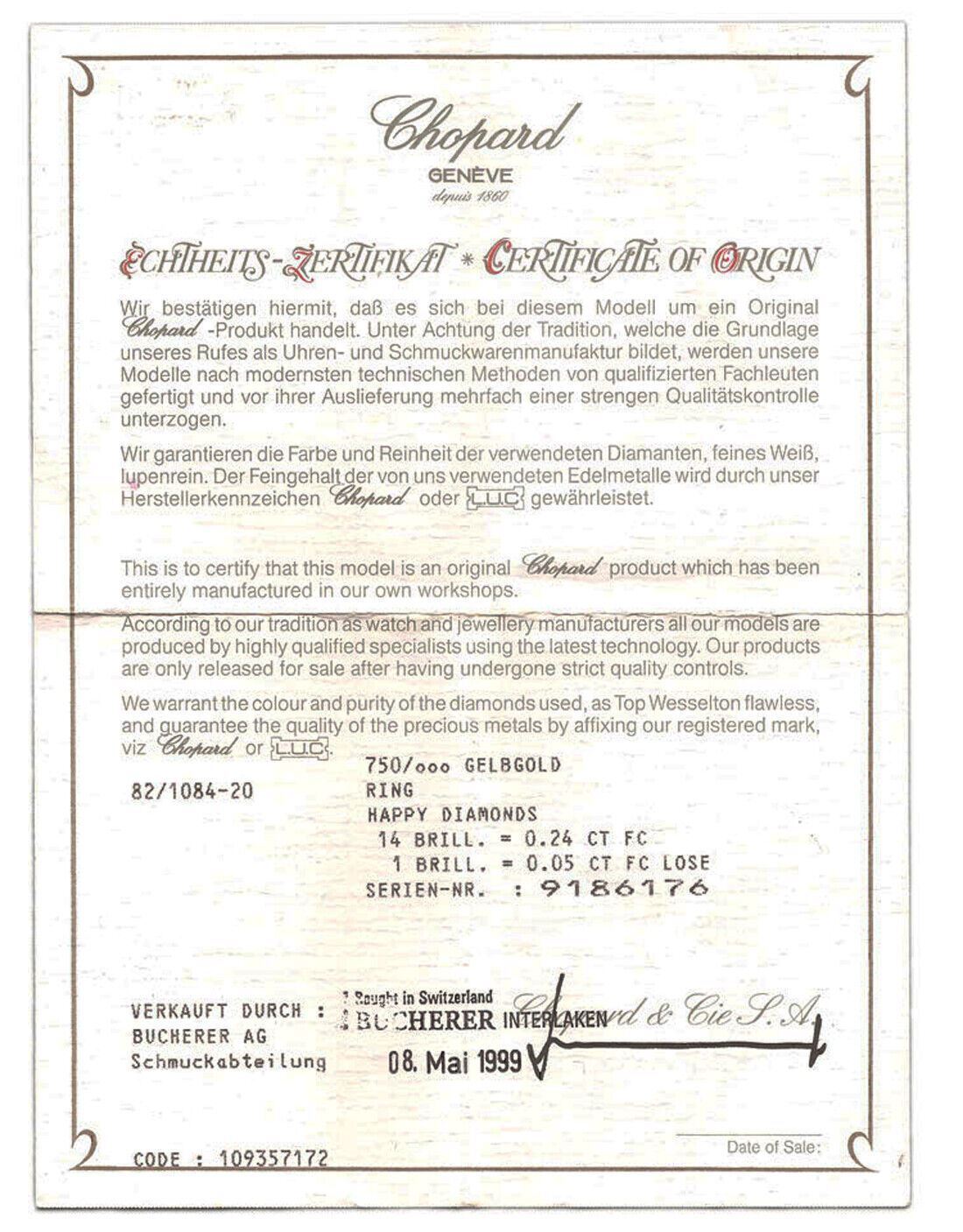 Chopard Happy Diamond 18k Yellow Gold Diamond Bezel Heart Ring w/cert - Size 5
