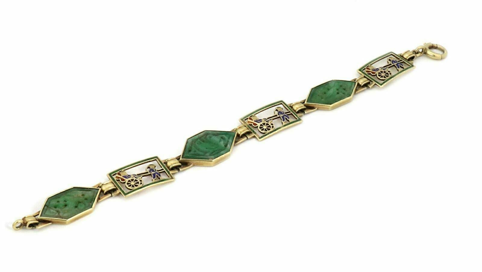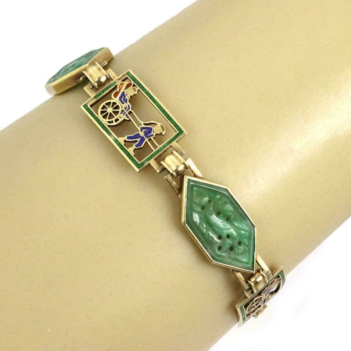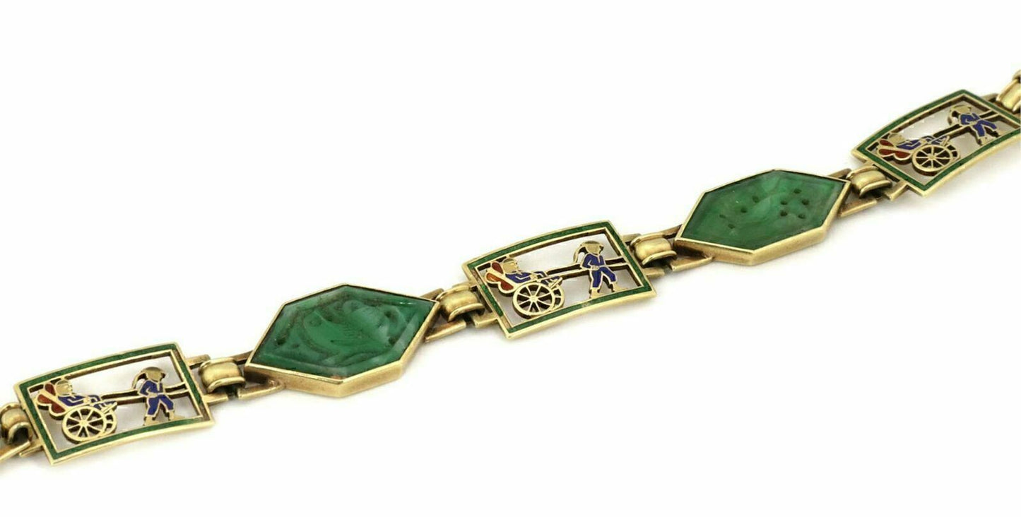 Jade & Multi-Color Enamel 14k Gold Open Link Bracelet