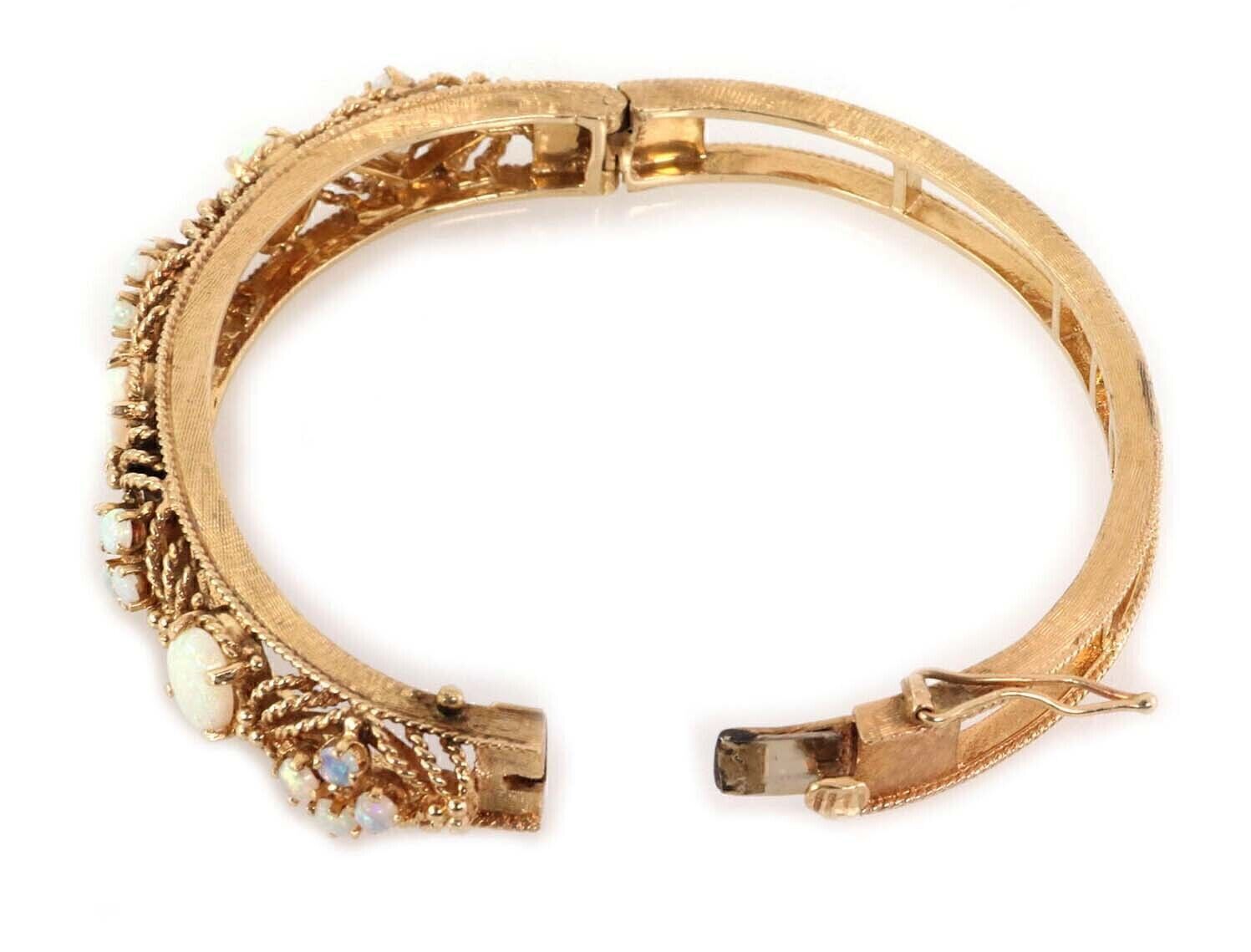Fire Opal 14k Yellow Gold Fancy Textured Floral Bangle Bracelet