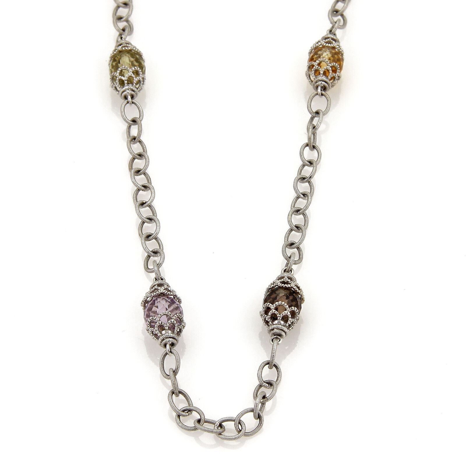 Gabriel & Co. Infinity Multicolor Gems 14k White Gold Fancy Bead Necklace 36"