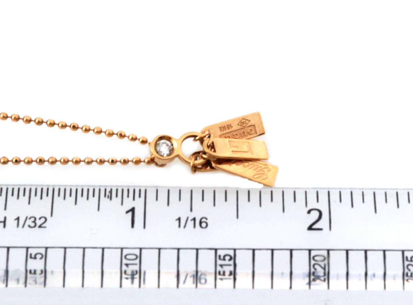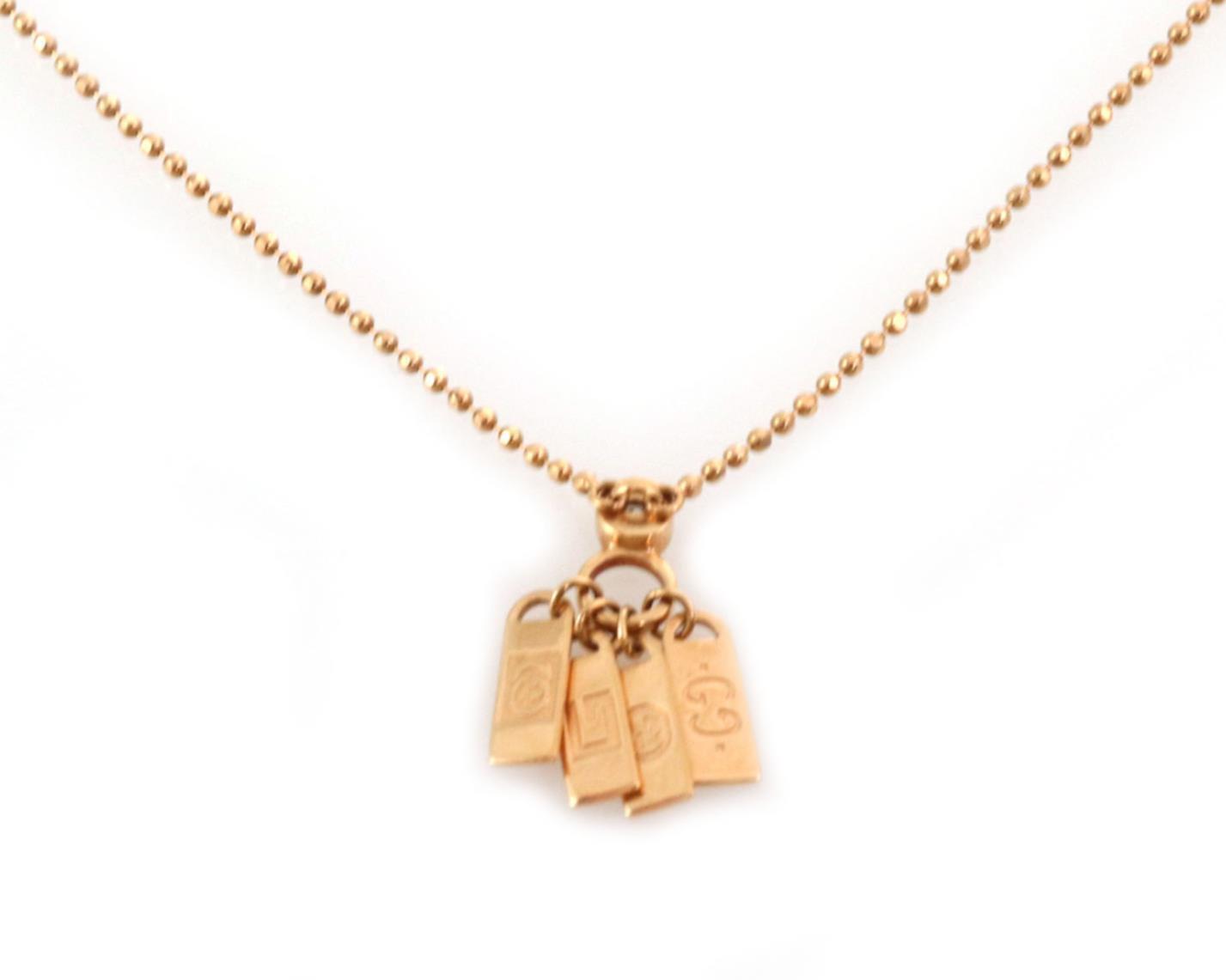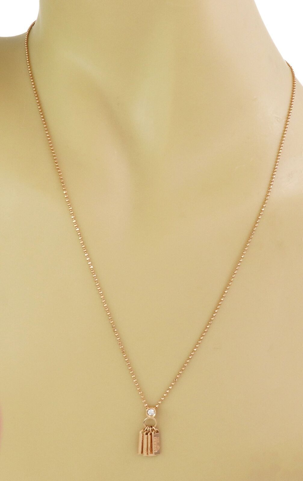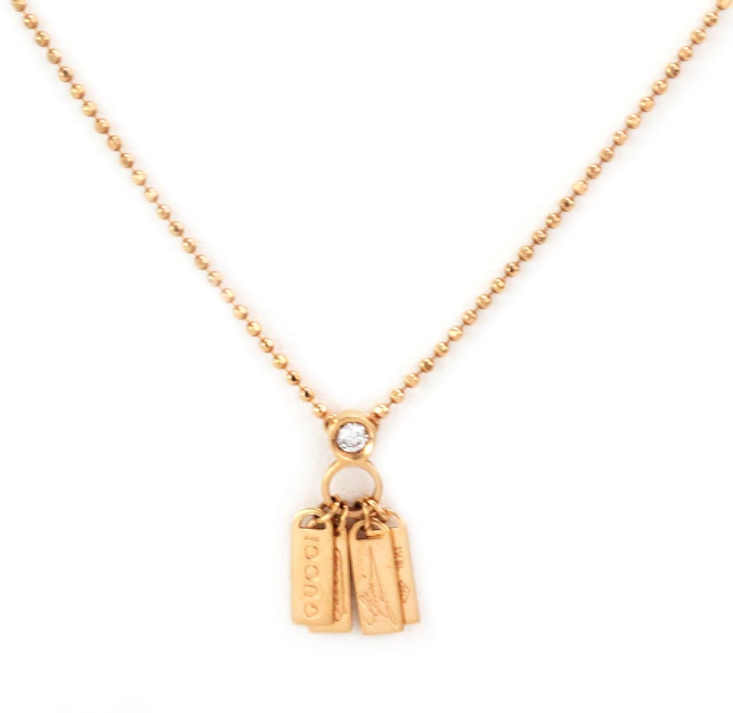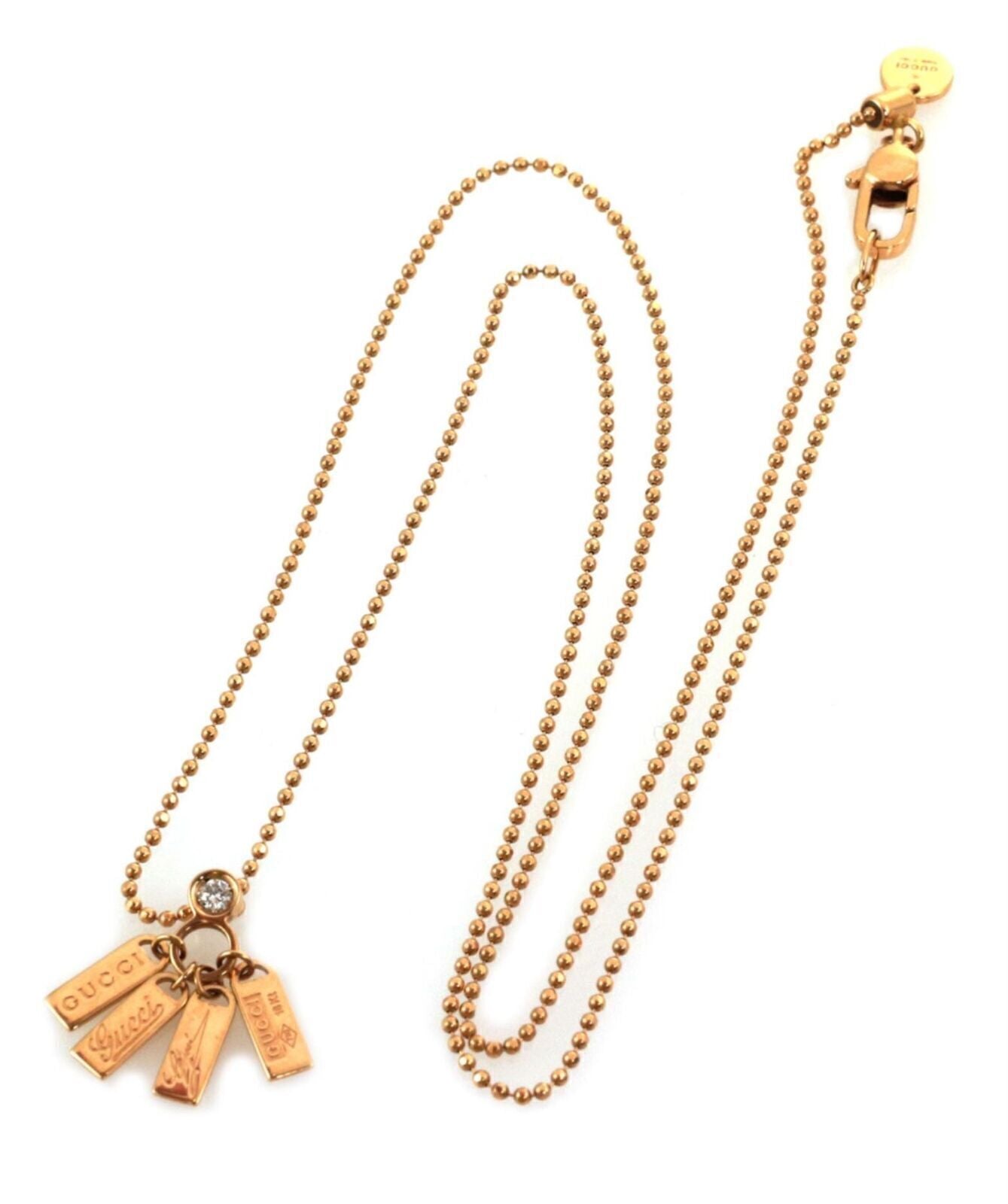 Gucci Diamond 18k Rose Gold 4 Logo Tag Pendant Bead Pendant Necklace