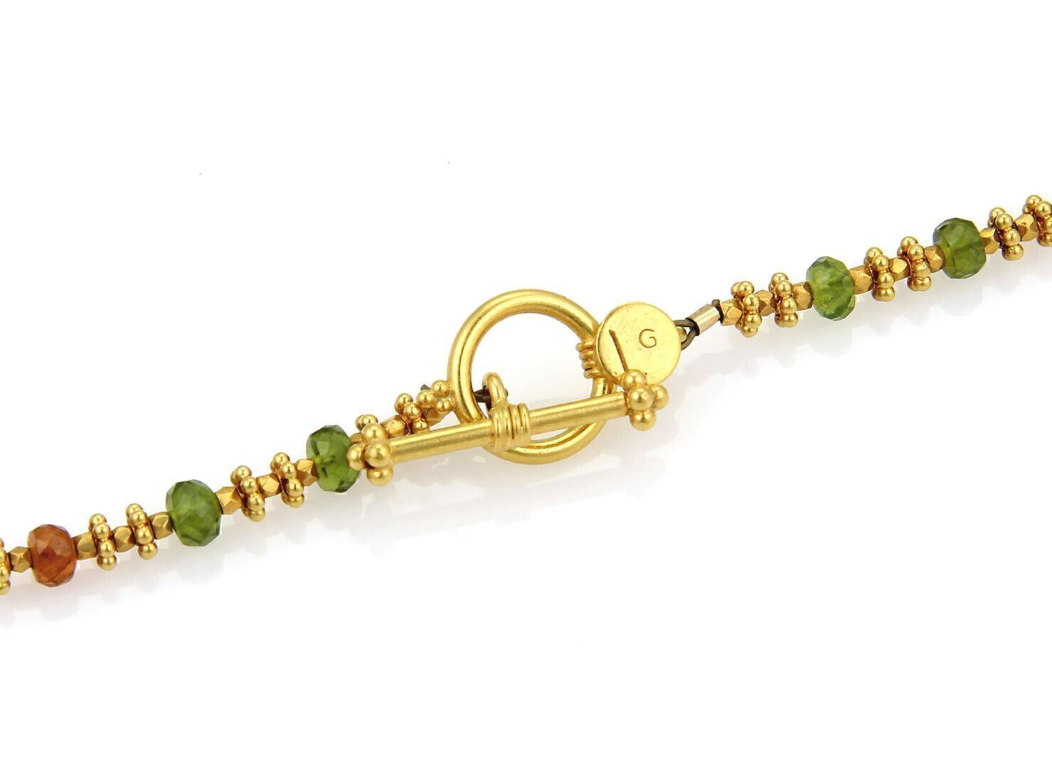 Laura Gibson 22k Yellow Gold Fractal Faceted Orange & Green Beaded Necklace