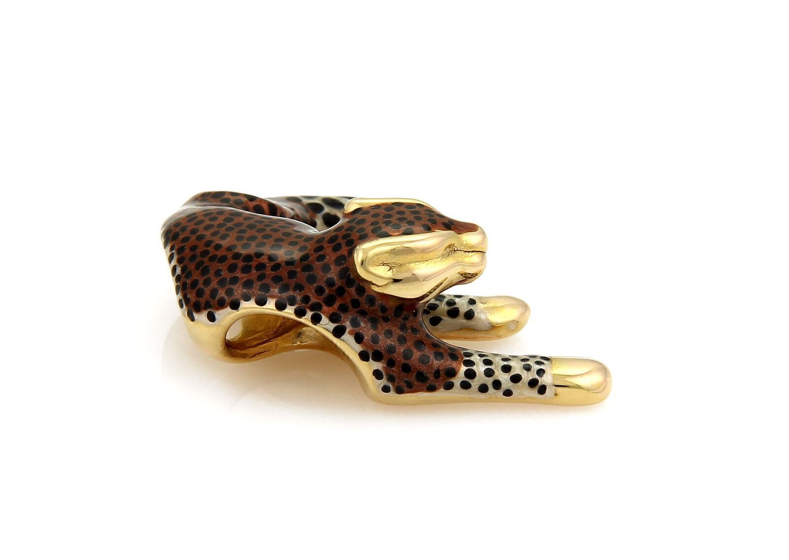 Leopard Multicolor Enamel 14k Yellow Gold Slide Pendant