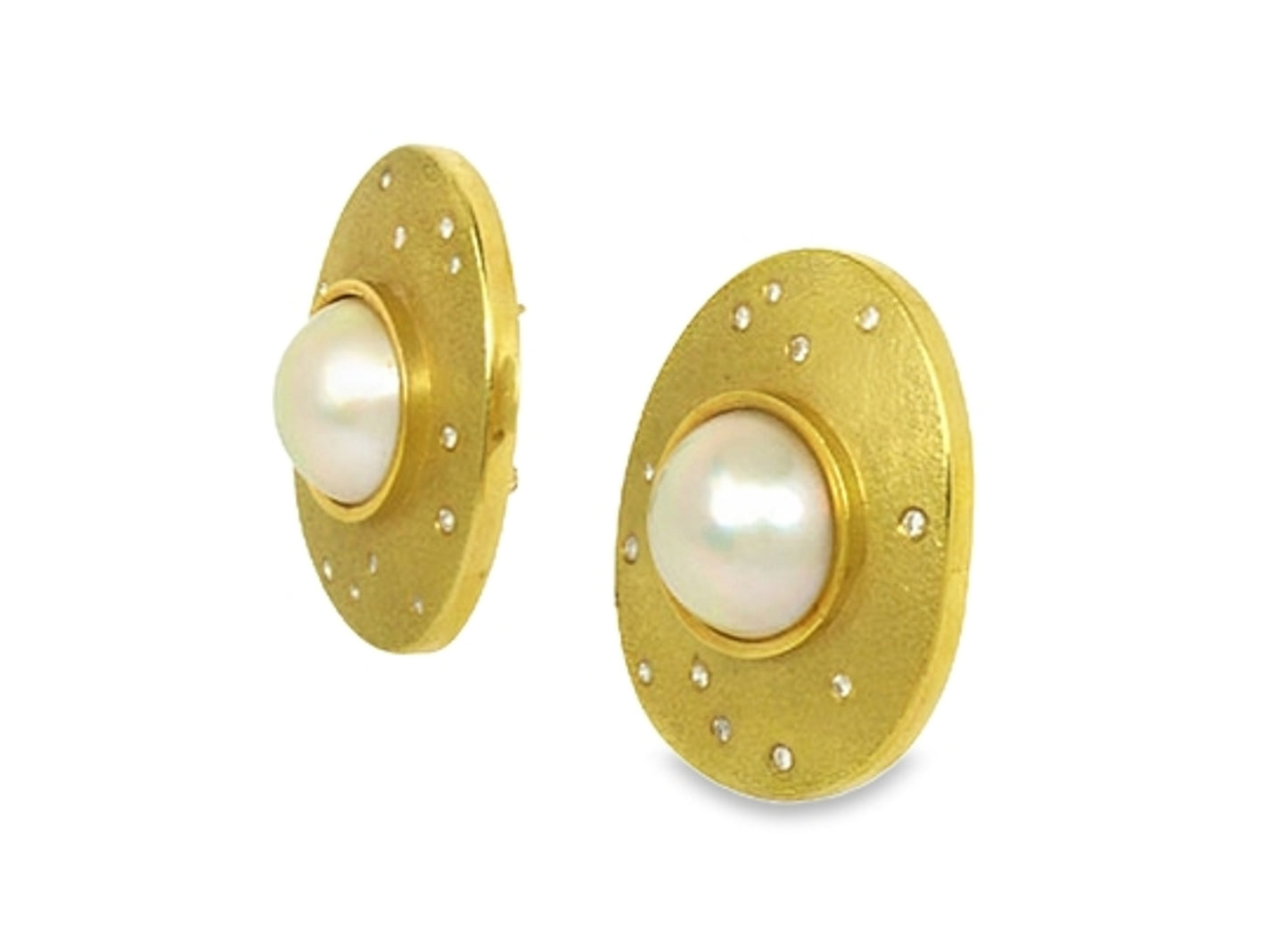 Mabe Pearls & Diamonds 18k Yellow Gold Textured Post Clip Earrings