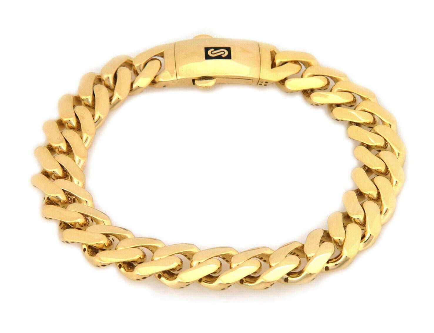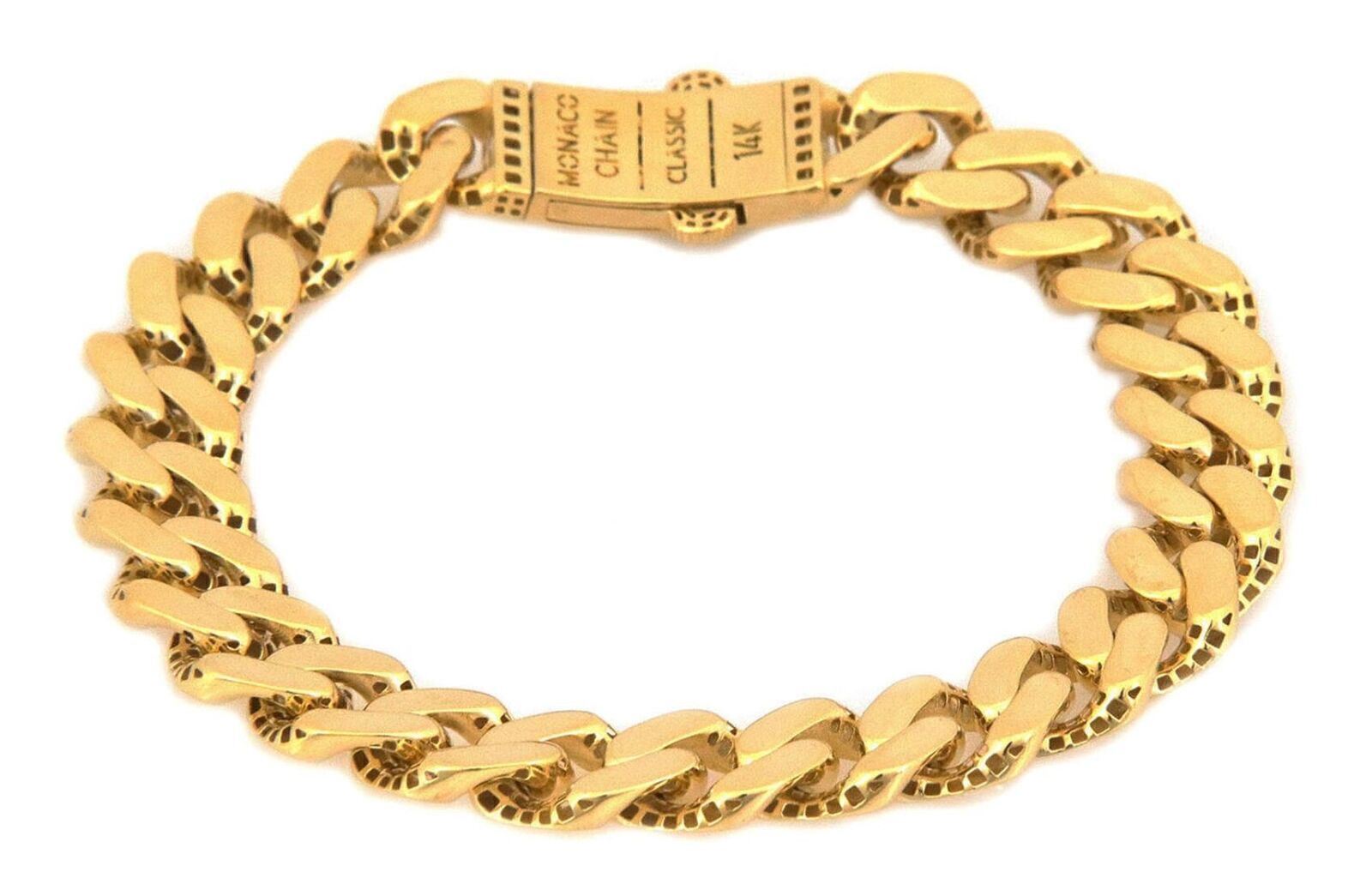 Crafted with elegance, the Monaco Classic 14k Yellow Gold Bracelet is a timeless addition to any jewelry collection. Its 8.25-inch length and 11mm wide flat Cuban link design exude sophistication, making it a perfect accessory for both casual and formal occasions. The warm yellow gold hue complements a variety of outfits, ensuring a stylish statement is made with every wear. The bracelet's sturdy 14k metal purity guarantees durability and lasting shine, reflecting the high-quality craftsmanship synonymous with the Monaco brand. With its classic chain style and no-stone embellishment, this piece favors a sleek and versatile aesthetic, suitable for anyone who appreciates refined menswear or a chic, minimalist look.