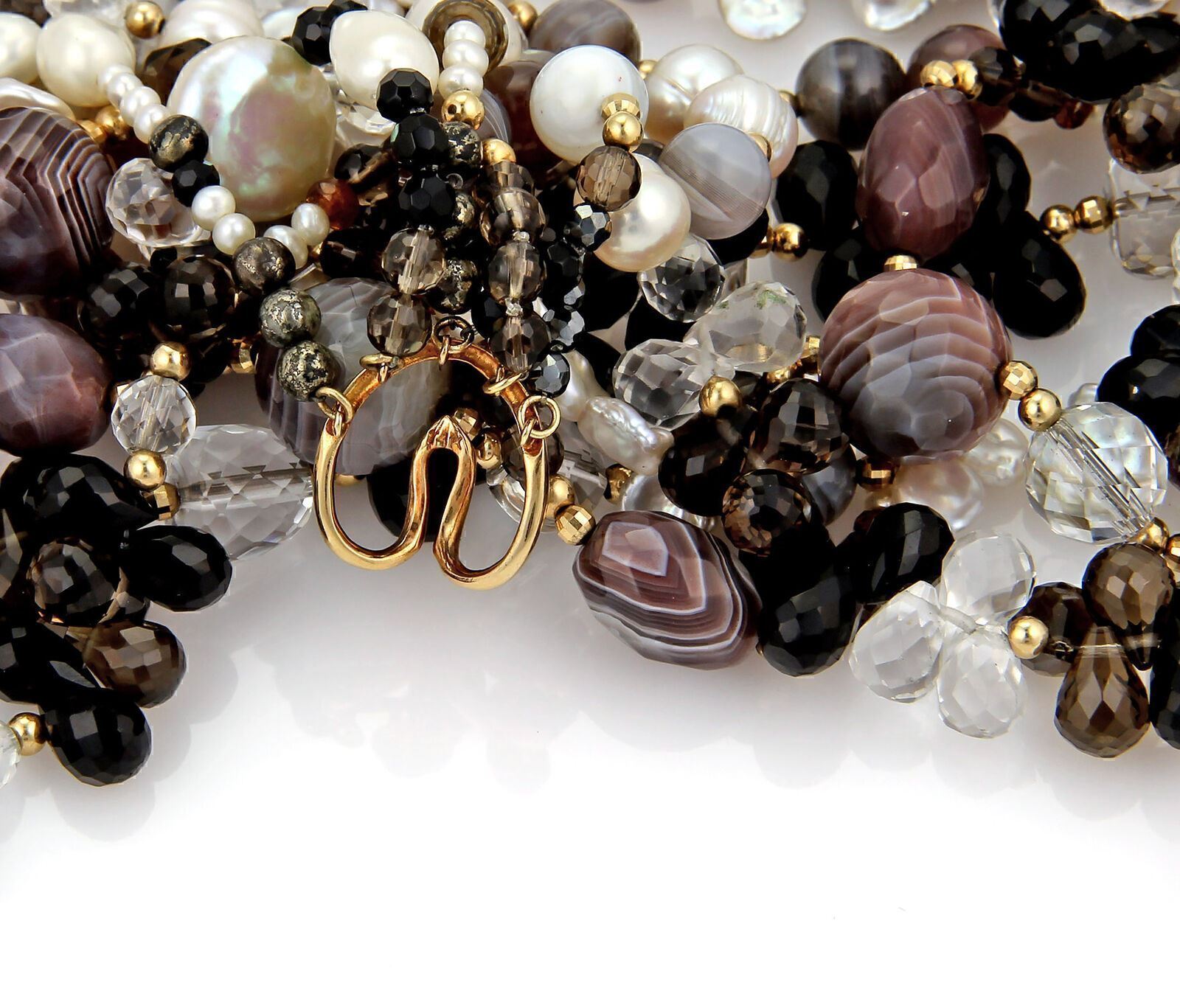Multi Color Gems 14k Gold Six Strand Necklace