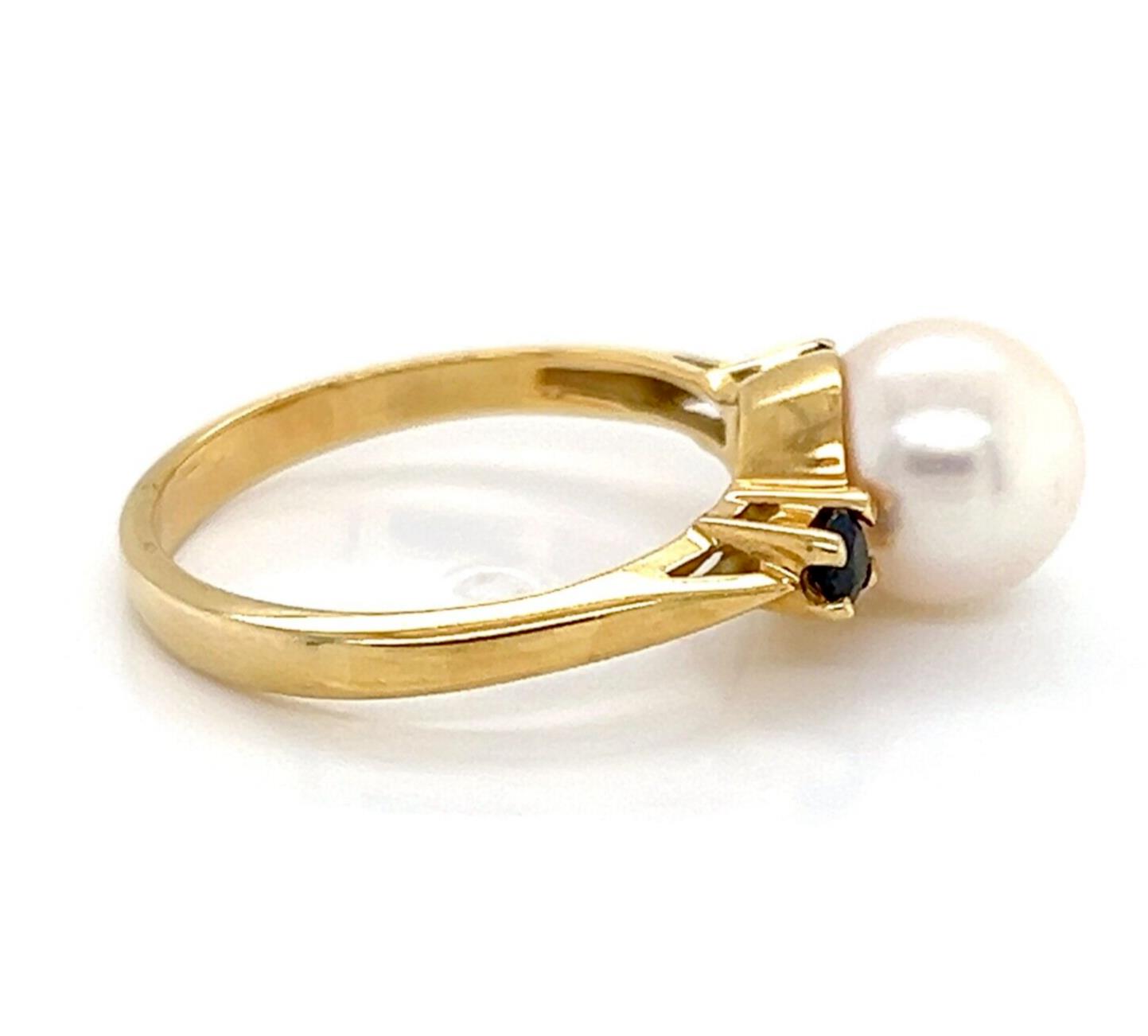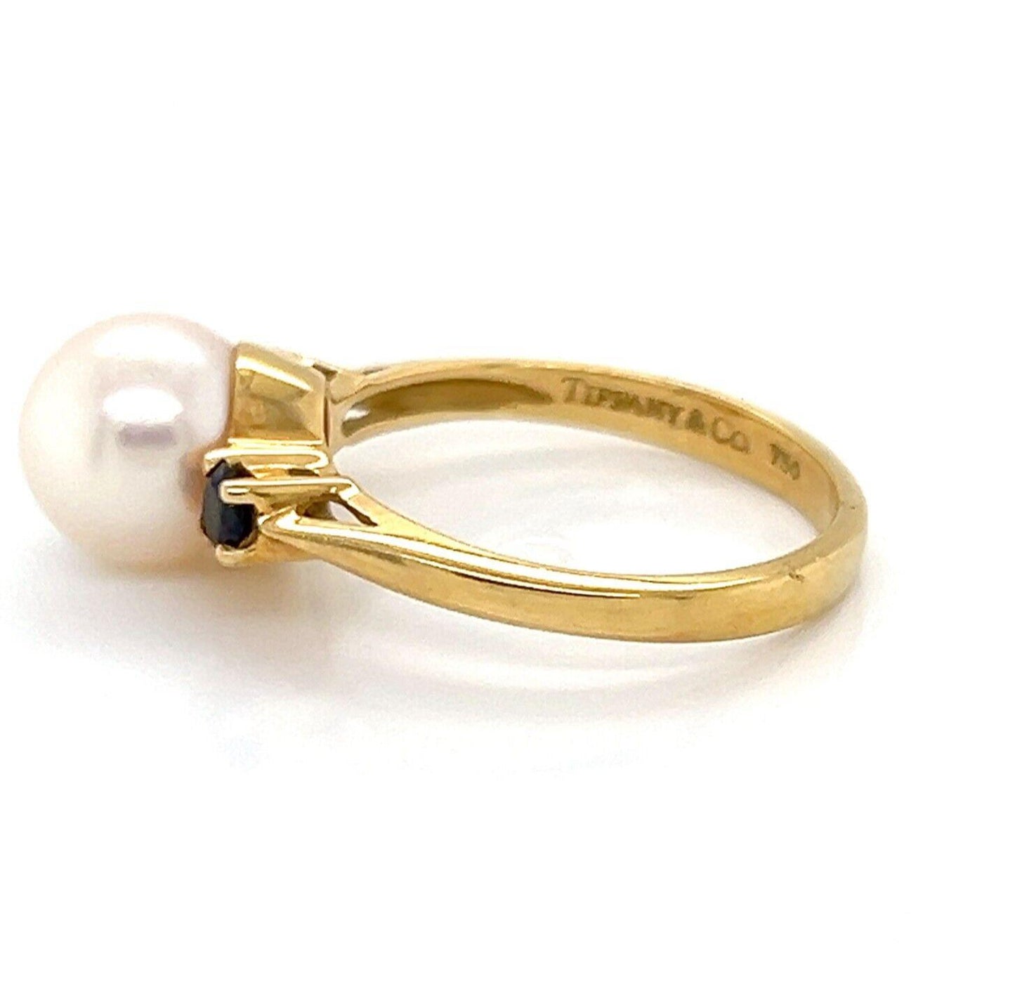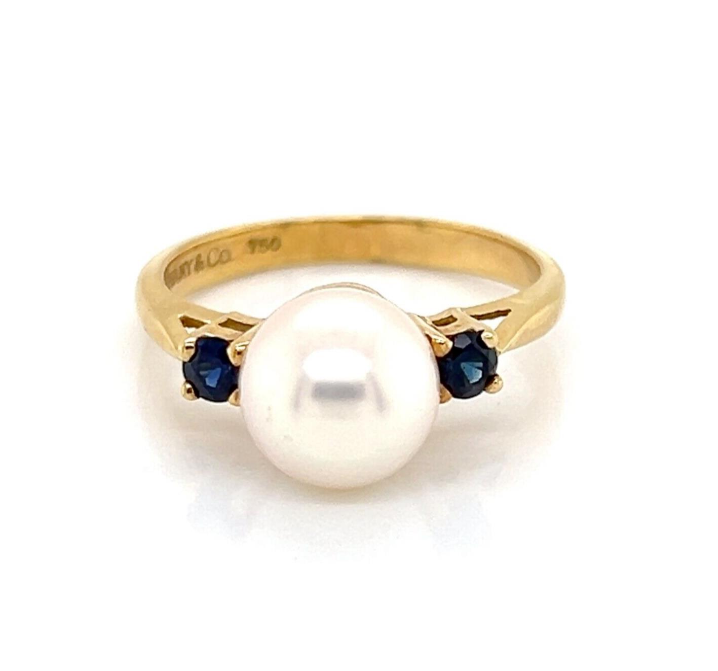 Tiffany & Co. Pearl & Sapphire 18k Yellow Gold Ring - Size 5