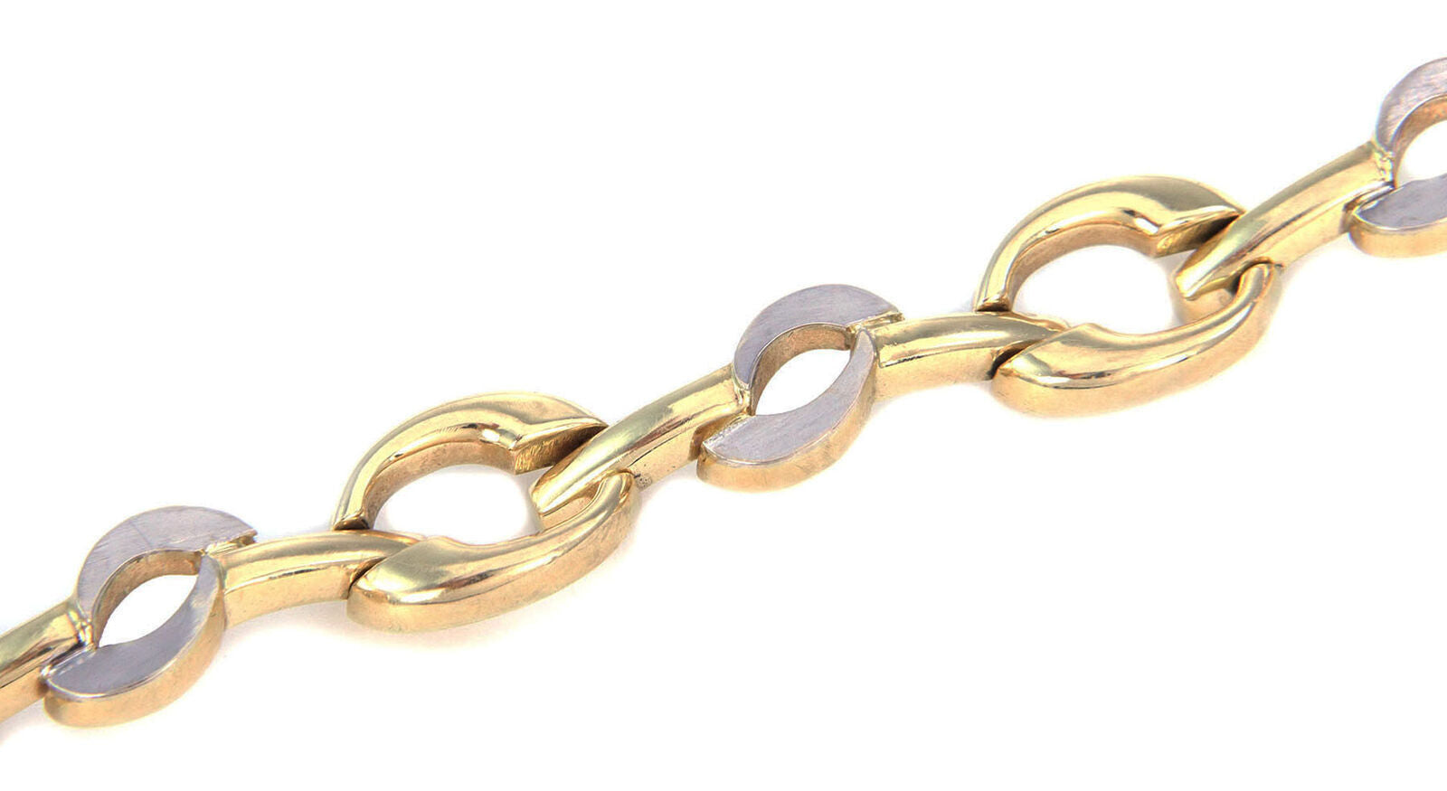 Wide Fancy 14k Two Tone Gold Link Bracelet